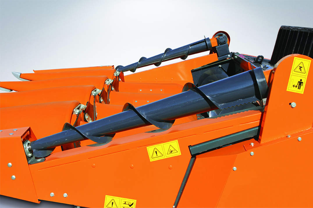 Plateaux récolteurs de maïs KE 500 / KE 600 / KE 800 offrent des vis de fin de rang pour la récolte des plantes couchées et la réduction des pertes de récolte, des rouleaux de coupe optimisant la vitesse de coupe, ainsi qu’un flux rapide de produit et des caractéristiques d’alimentation. Ils fonctionnent avec un besoin minimal en puissance et permettent une récolte précise et rapide. La chaîne de collecte réglable et les broyeurs de racines protègent les pneus.