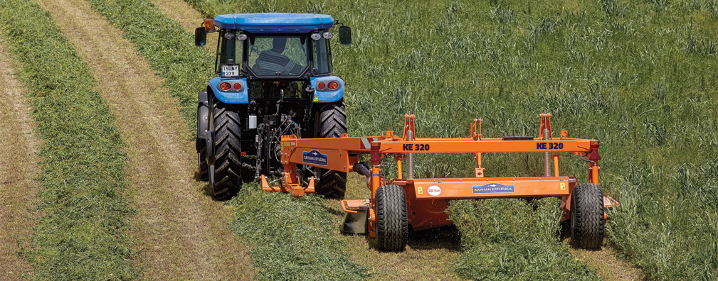 KE 320 Çayır Biçme Makinası, uzun ve ağır çalışma koşullarında minimum bakım ihtiyacı ve yüksek iş kapasitesi sunar. Uzun ömürlü ve özel tasarım disk sistemi ve KE bıçakları ile donatılmıştır. Yabancı maddeleri uzaklaştıran disk tasarımı, her diski hasarlardan koruyan emniyet sistemi ve hızlı, eşit kuruma sağlayan özel tasarım şartlandırıcı ile dikkat çeker. Hidrolik kontrollü kesici tabla ve süspansiyon sistemi ile engebeli arazilerde dengeli çalışma sağlar.