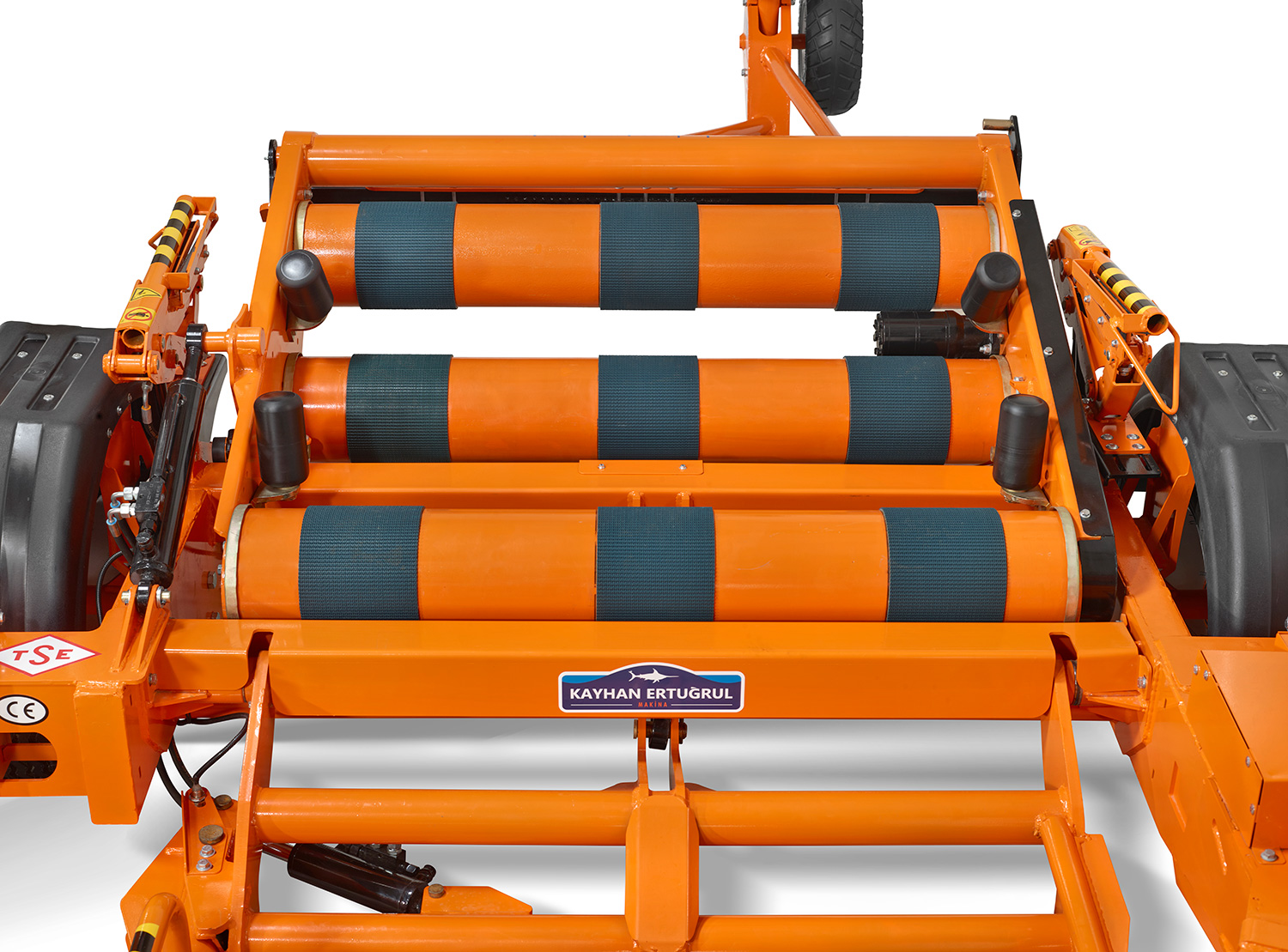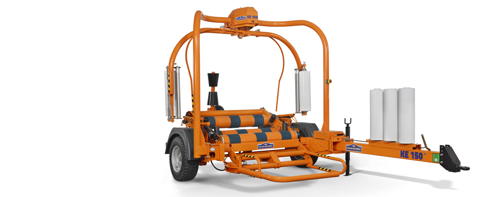 Пресс-подборщик KE 150 обладает мощностью до 1000 кг, размером тюков от 900 мм до 1500 мм, полностью автоматической системой с двумя ножами с цифровым управлением и электронным контрольным панелем. Обеспечивает эффективное оборачивание благодаря системе цилиндров для вращения тяжелых тюков и вертикальной системе сброса.